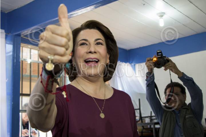 AGUASCALIENTES, AGUASCALIENTES, 05JUNIO2016.- Lorena Martínez, candidata de la alianza PRI, PT, PVEM y PANAL, emitió su voto pasadas las 9 de la mañana en la capital. FOTO: YOLIZTLI RAMOS /CUARTOSCURO