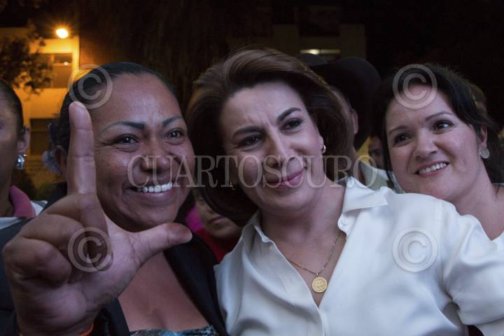 CALVILLO, AGUASCALIENTES.– Lorena Martínez, candidata de la coalición PRI, PT, PVEM y PANAL por la gubernatura, hizo uno de sus cierres de campaña en el municipio de Calvillo, junto con el presidente nacional del PRI, Manlio Fabio Beltrones y la aspirante a la alcaldía, Cecilia Valdivia Hernández. Al evento asistieron cerca de 1000 personas FOTO: YOLILZTLI RAMOS /CUARTOSCURO.COM