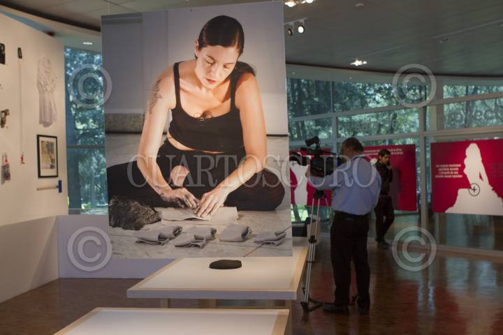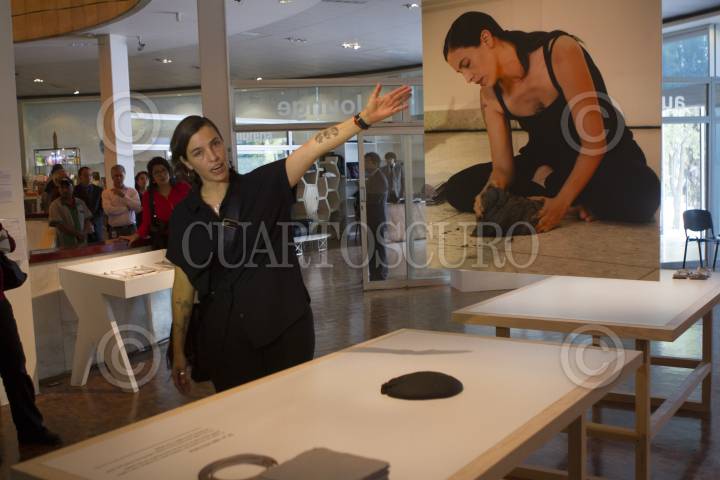 MÉXICO, D.F., 10JULIO2015.- Lorena Wolffer inauguró la exposición "Lorena Wolffer/Expuestas: registros públicos" en el Museo de Arte Moderno. La artista dedicada a las prácticas neoconceptuales desde la década de los 90, desarrolló un tema poco habitual en un museo; el grave problema de la violencia de género y familiar, la muestra se presentará en diferentes áreas del museo, Sala Gamboa, Gabinete y Jardín Escultórico, del 11 de julio al 18 de octubre 2015. FOTO: MOISÉS PABLO /CUARTOSCURO.COM