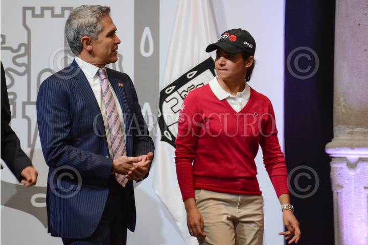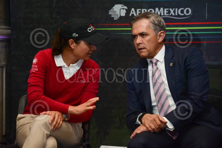 CIUDAD DE MÉXICO, 26ABRIL2017.- Miguel Ángel Mancera, Jefe de Gobierno; Lorena Ochoa Reyes, exjugadora de golf profesional, durante la presentación del “Lorena Ochoa Match Play”. En el torneo participará Lorena Ochoa, lo que marca su regreso a la actividad, además compartirá el campo con la sueca Annika Sorenstam, la estadoudense Juli Inkster y la coreana Se Ri Pak. FOTO: MARIO JASSO /CUARTOSCURO.COM