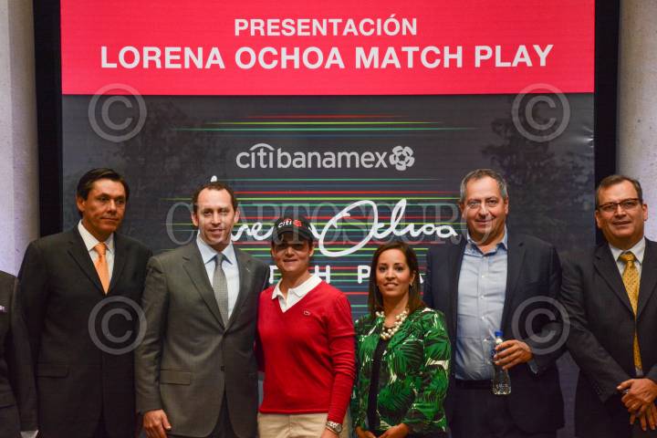 CIUDAD DE MÉXICO, 26ABRIL2017.- Manuel Portilla Dieguez, subdirector de Cultura Física; Lorena Ochoa Reyes, exjugadora de golf profesional; Horario de la Vega Flores, Director General del Indeporte; Alejandro Ochoa, director del “Lorena Ochoa Match Play”; Mariana Fuentes Cuevas, gerente de patrocinios Aereomexico, durante la presentación del “Lorena Ochoa Match Play”. En el torneo participará Lorena Ochoa, lo que marca su regreso a la actividad, además compartirá el campo con la sueca Annika Sorenstam, la estadoudense Juli Inkster y la coreana Se Ri Pak. FOTO: MARIO JASSO /CUARTOSCURO.COM