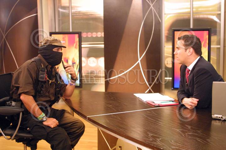 MEXICO D.F. 09MAYO2006.- El subcomandante Marcos, delegado Zero, fue entrevistado por Carlos Loret en el notociero ¨Primero Noticias¨. El lider del EZLN exige la liberación de los detenidos por los acontecimientos de la semana pasada en Texcoco y San Salvador Atenco. FOTO: Esmas.com/Noticieros Televisa/CUARTOSCURO.COM