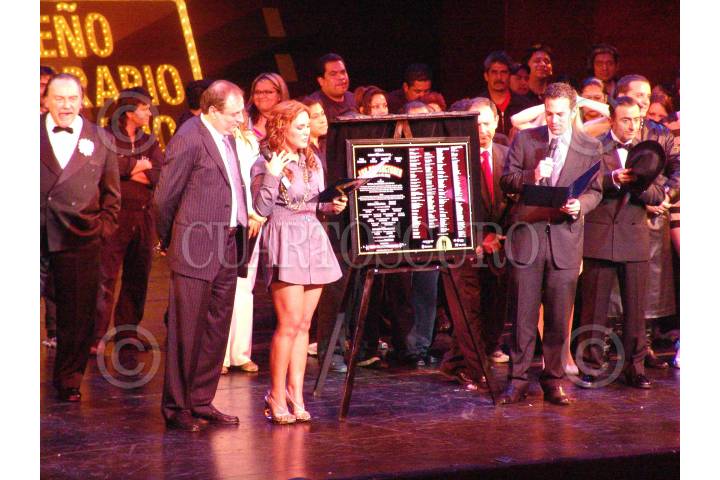 MÉXICO D.F. 01MARZO2007.- Angelica Vale y Carlos Loret fueron los padrinos de la placa de la develación de las 100 representaciones de la obra ¨Los productores¨. FOTO: ELENA MENDOZA/OCESA/CUARTOSCURO.COM