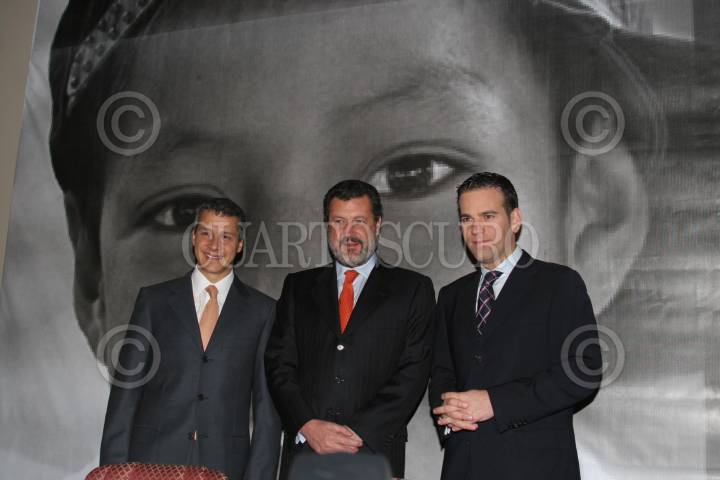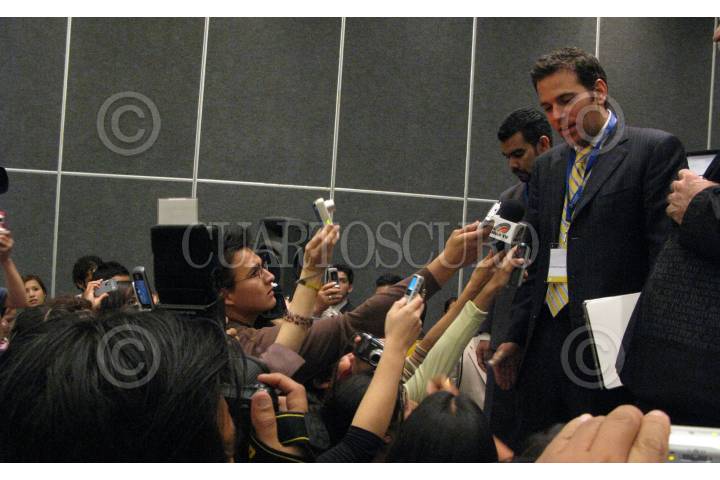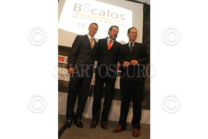 MÉXICO D.F. 27JUNIO2006.- Carlos X González, de fundación televisa, Marcos Martínez, presidente de la Asociación de Bancos de México y el periodista, Carlos Loret de Mola, realizaron la presentación del programa Becalos que dara apoyo a maestros y alumnos de escasos recursos para que continuen sus estudios. FOTO: Miguel Areyano/CUARTOSCURO.COM