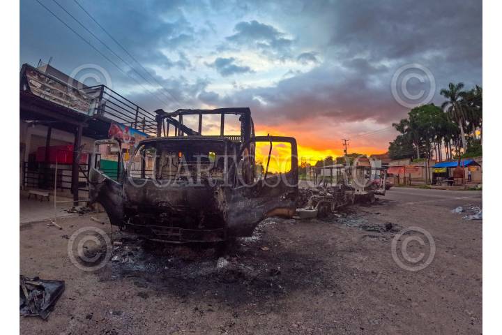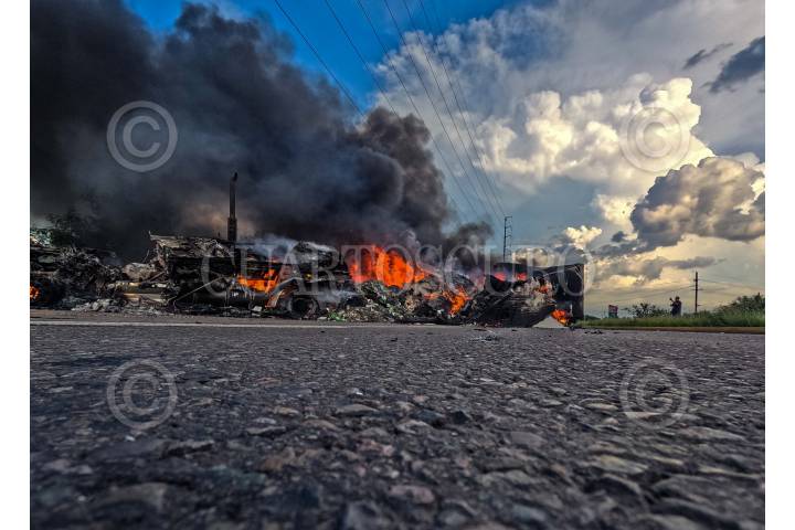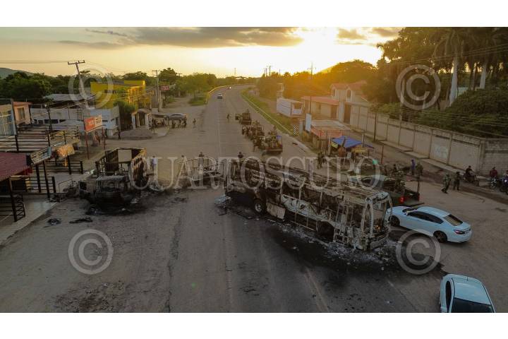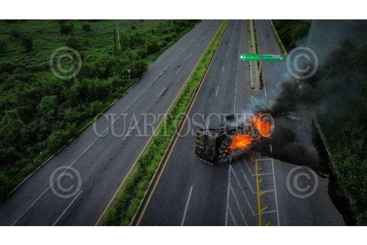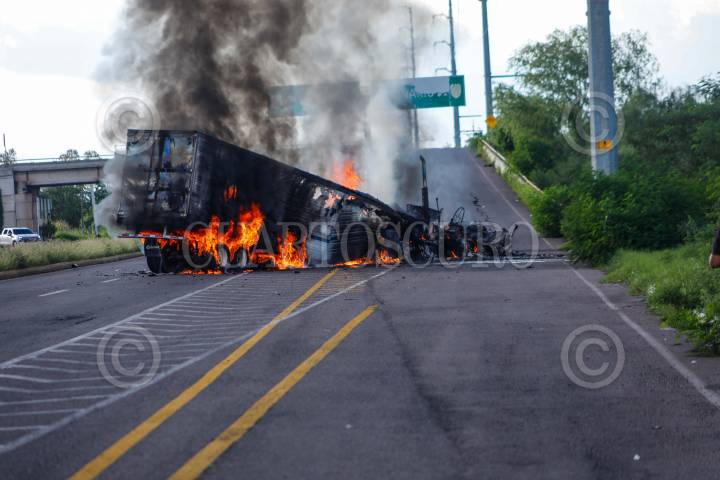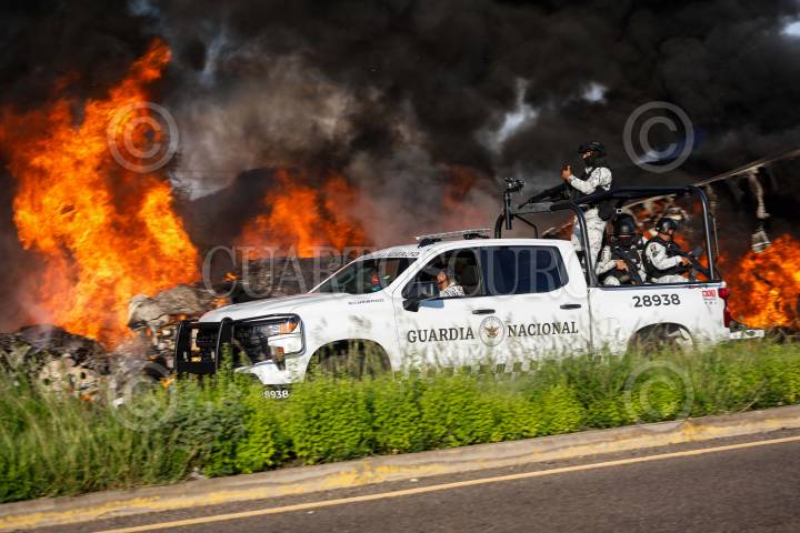 CULIACÁN, SINALOA, 29AGOSTO2024.- En diversos puntos de la entidad se registraron bloqueos con automóviles incendiados, luego de los enfrentamientos, que se dieron entre integrantes del Cártel de Sinaloa y la Fuerzas Armadas por la presunta captura de Iván Archivaldo Guzmán Salazar líder de la facción conocida como “Los Chapitos” del Cártel de Sinaloa, detención que recientemente fue negada por la Secretaría de la Defensa Nacional (Sedena). FOTO: JOSÉ BETANZOS/CUARTOSCURO.COM