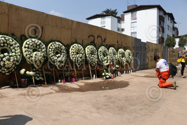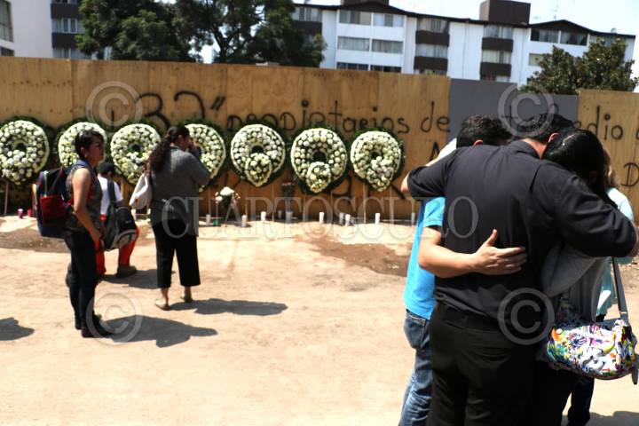 CIUDAD DE MÉXICO, 01OCTUBRE2017.- Vecinos de la colonia Girasoles colocaron un memorial en el predio en donde cayo una unidad habitacional tras el sismo del pasado 19 de septiembre, en el lugar murieron varios residentes. FOTO: CARLOS MARURI /CUARTOSCURO.COM