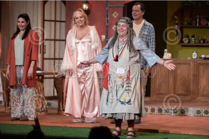 Angelina Moreno, Juan Osorio, Angelina Moreno, Leticia Calderon y Eva Daniela durante el homenaje a la actriz Beatriz Moreno por sus 50 años de trayectoria, dentro de la obra Los Guajolotes Salvajes en el Teatro Ignacio López Tarso.