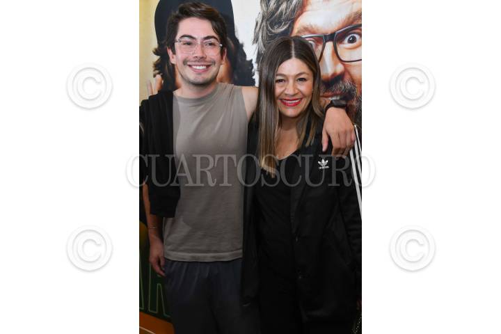CIUDAD DE MÉXICO, 20JUNIO2024.- Martha Figueroa, periodista y escritora, junto a su hijo Alex, durante la alfombra de la última presentación del show de comedia "Los Marihuanólogos" en "Marketeatro". FOTO: MARIO JASSO/CUARTOSCURO.COM