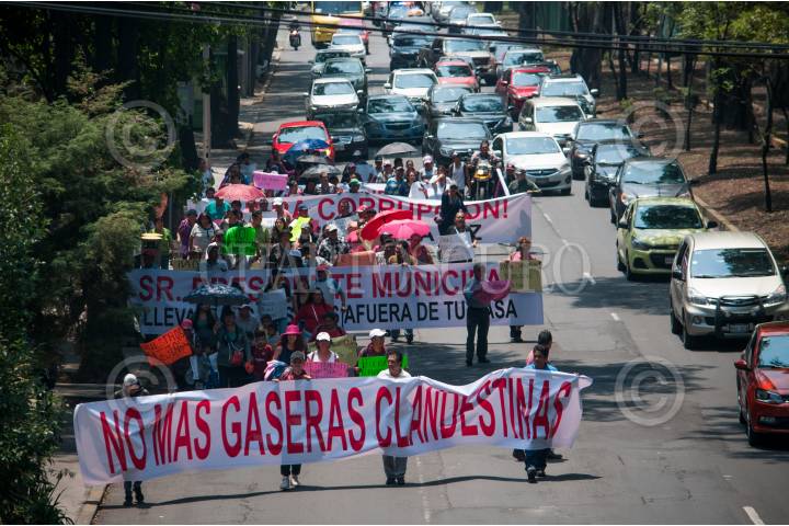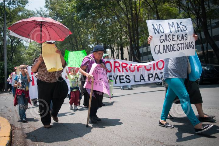 CIUDAD DE MÉXICO, 23MAYO2018.- Habitantes del municipio de Los Reyes La Paz, en el Estado de México, realizaron una marcha sobre Ejercito Nacional rumbo a la Secretaría de Medio Ambiente y Recursos Naturales (SEMARNAT) para exigir que el secretario Rafael Pacchiano intervenga y ordene al director general de la Agencia de Seguridad, Energía y Ambiente (ASEA), Carlos de Regules Ruiz-Funes, la clausura de varias gaseras que ponen en riesgo su integridad al incumplir con las normas de seguridad. FOTO: DIEGO SIMÓN SÁNCHEZ /CUARTOSCURO.COM