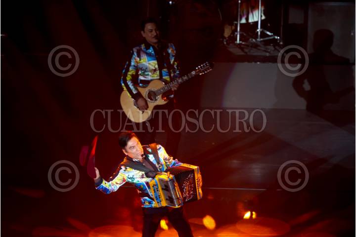 Jorge Hernández, acordeón, y Hernán Hernández, bajo eléctrico, del grupo musical Los Tigres del Norte, durante el Tour "Siempre Contigo" en la Arena Ciudad de México