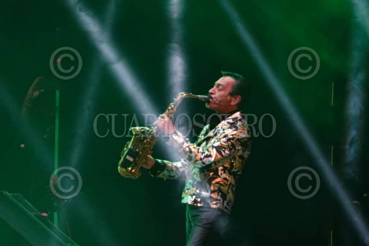 El saxofonista Eduardo Hernández del grupo musical Los Tigres del Norte, durante el Tour "Siempre Contigo" en la Arena Ciudad de México