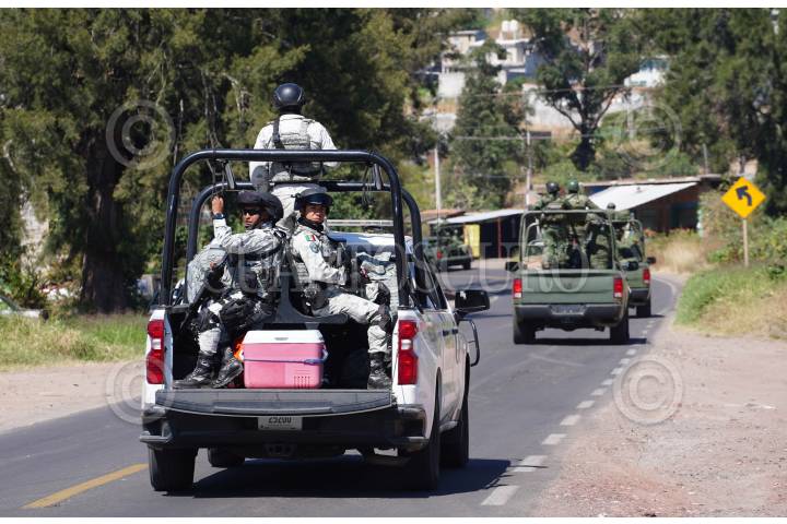 MORELIA, MICHOACÁN, 13ENERO2025. Camiones "Monstruos, como se les conoce a los vehículos blindados artesanalmente que son usados por los distintos grupos del crimen organizado, quienes se disputan del control del territorio del estado de Michoacán. Estas unidad han evolucionado para adaptarse a los cambios tecnológicos de los conflictos, como son los ataques con drones. Actualmente se ha desatado una "guerra" por el control dela llamada Tierra Caliente de Michoacán, autoridades han dado a conocer alianzas entre grupos criminales para lograr este objetivo, como ejemplo, la que han formado e Cártel Jalisco Nueva Generación (CJNG) y Los Viagras. Muchas de las peleas ahora son con drones adaptados y los vehículos artesanalmente blindados se han tenido que reforzar para soportar estos embates. En la imagen un comando vigila su territorio en una "Monstruo".. FOTO: JUAN JOSÉ ESTRADA SERAFÍN/CUARTOSCURO.COM