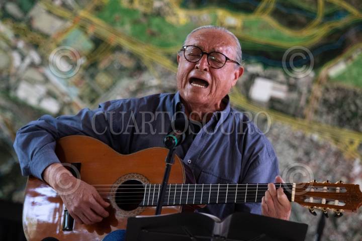 Gabino Palomarez ofreció dos canciones de su repertorio durante la develación del billete de la Lotería Nacional que celebra la obra de los cantautores.