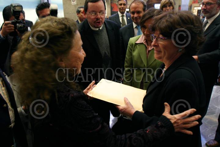 MÉXICO, D.F., 06FEBRERO2008.- La senadora Rosario Ibarra de Piedra, le entregó un informe del trabajo que ella ha realizado en la busqueda de los desaparecidos de la guerra sucia a Louise Arbour, Alta Comisionada para los Derechos Humanos de la ONU, durante su visita a la Cámara de Senadores. FOTO: MOISÉS PABLO/CUARTOSCURO.COM