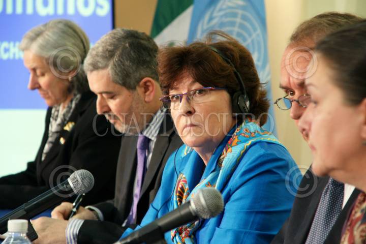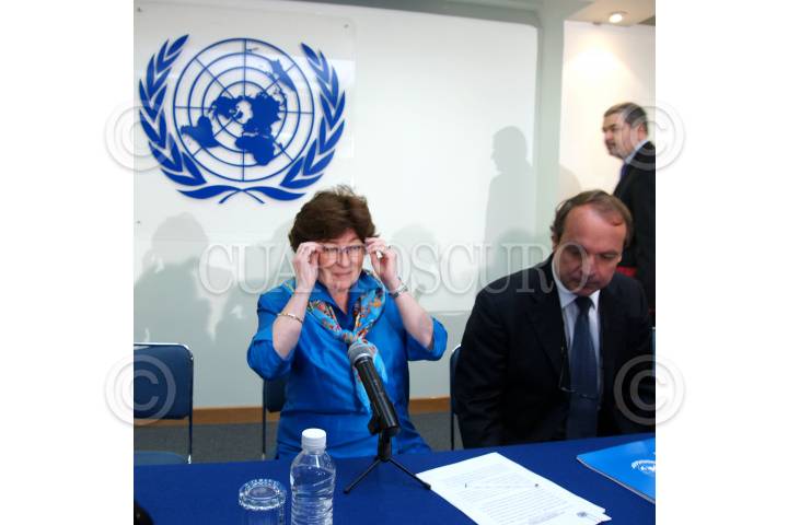 MÉXICO D.F., 08FEBRERO2008.- Louise Arbour, Alta Comisionada de Derechos Humanos de las Naciones Unidas y Amerigo Incalcaterra, representante de la oficina del alto comisionado de las Naciones Unidas para los derechos humanos durante una conferencia de prensa que ofrecieron a los medios de comunicación. FOTO: RODOLFO ANGULO/CUARTOSCURO.COM