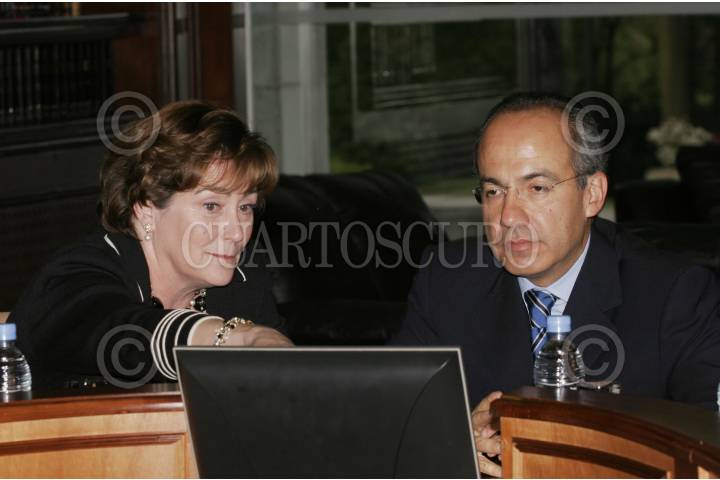 MEXICO D.F. 23 DE MARZO DEL 2007. El presidente Felipe Calderón Hinojosa, durante la reunión con la señora Louise Goeser presidenta de Ford, esto en la residencia oficial de los Pinos. FOTO: ALFREDO GUERRERO /CUARTOSCURO.COM