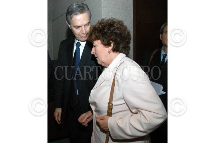 MEXICO, DF 29JUNIO2005.- El secretario de Relaciones Exteriores Luis Ernesto Derbez y la alta comisionada de Naciones Unidas para los Derechos Humanos Louise Arbour llegan a la conferencia conjunta que ofrecieron en las instalaciones de la cancillería mexicana. FOTO: Miguel Dimayuga/CUARTOSCURO.COM