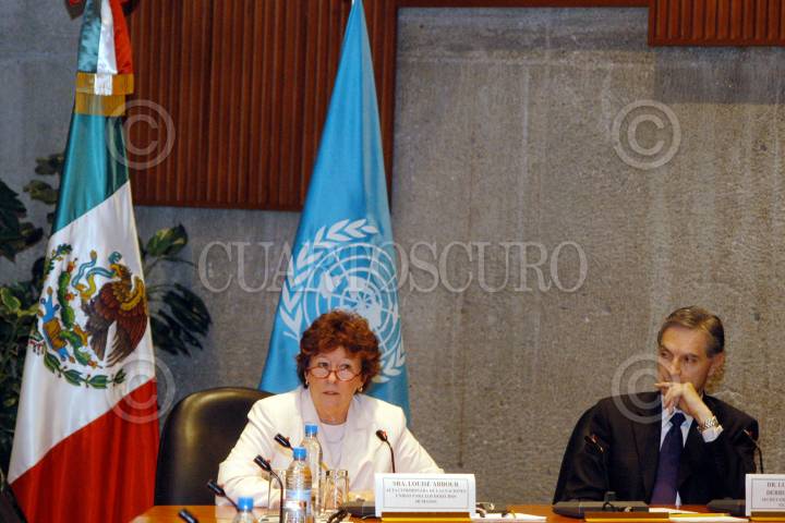 MEXICO, DF 29JUNIO2005.- La alta comisionada de Naciones Unidas para los Derechos Humanos Louise Arbour durante la conferencia ofrecida en la sede de la secretaria de relaciones Exteriores. FOTO: Miguel Dimayuga/CUARTOSCURO.COM