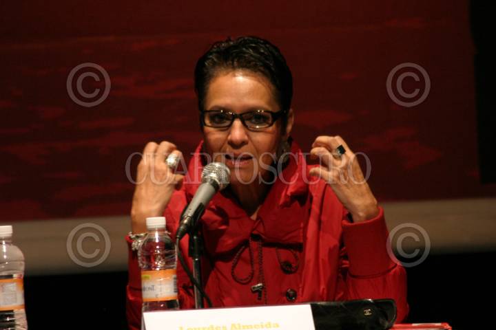 MÉXICO, D.F., 14MARZO2013.- Lourdes Uranga López, durante la presentación de su libro “Comparezco y acuso”, en el Auditorio de la Delegación Iztacalco. Durante la presentación fue acompañada de Elizabeth Mateos Hernández, jefa delegacional de Iztacalco y de Beatriz Santamaría Monjaraz, Directora del General de Inmujeres del D.F. FOTO: GUILLERMO PEREA /CUARTOSCURO.COM