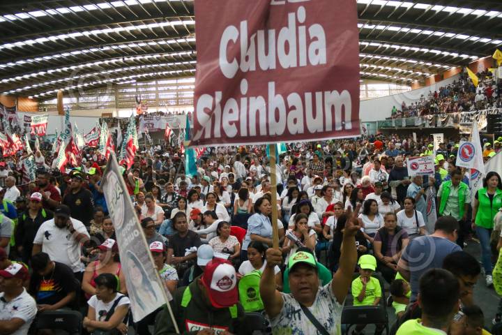 CIUDAD DE MÉXICO. 02ABRIL2024.- Lourdes Paz, candidata a la alcaldía de Iztacalco, inicio su proselitismo acompañada de la aspirante de Morena a la jefatura del Gobierno, Clara Brugada y Omar García Harfuch, en la plaza de armas de la Magdalena Mixhuca. FOTO: VICTORIA VALTIERRA/CUARTOSCURO.COM