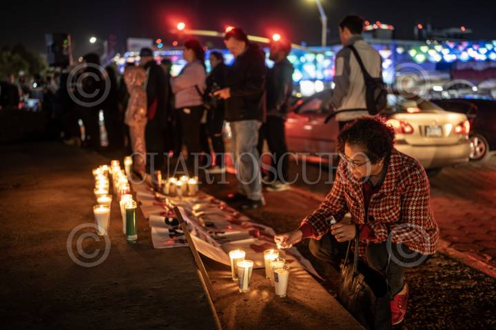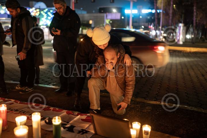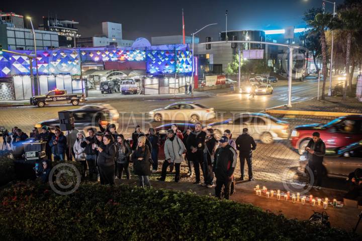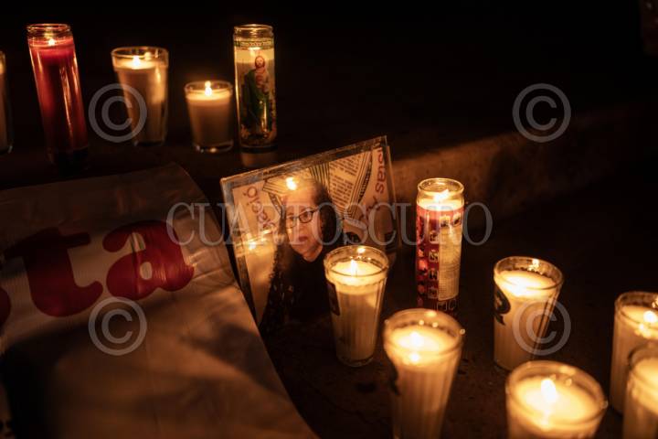 TIJUANA,, BAJA CALIFORNIA, 23ENERO2024.- El gremio periodístico se unió para conmemorar el segundo aniversario de la muerte de la periodista Lourdes Maldonado, pero también para exigir justicia por su asesinato. Lourdes, fue asesinada el 23 de enero del 2022, a las afueras de su vivienda, cuando se encontraba aún a bordo de su vehículo; aunque hay tres personas detenidas con relación a su muerte, los asesinos intelectuales continúan libres. El encuentro se realizó en la glorieta Cuauhtémoc, donde se proyectaron imágenes de ella y del momento en el que durante una mañanera del presidente Andrés Manuel Lopez Obrador, pidió ayuda, “vengo también aquí para pedirle apoyo, ayuda y justicia laboral, porque hasta temo por mi vida”, expresó la periodista en relación a un pleito con un político en él que llevaba 6 años y que incluso había salido en un inicio el laudo a su favor. Veladoras, alumbraban los rostros en las fotografía de Lourdes y de Margarito Martinez, fotoperiodista que fue asesinado seis días antes que Maldonado y que aunque se realizó una manifestación por parte del gremio en la mañanera con la Fiscal María Elena Andrade, esta ocasión su memoria también estaba siendo recordada. Con lágrimas en los ojos, algunos relataron experiencias vividas con ellas y expresaron lo mucho que la echaban de menos, “falta justicia, las autoridades no están cumpliendo con eso, no están haciendo justicia, no solo por ellos sino por el pueblo en general, por todas las víctimas y nosotros al menos yo, no pienso descansar de una u otra forma hasta lograrlo” comentó el periodista, Alberto Elenes. FOTO: OMAR MARTÍNEZ /CUARTOSCURO.COM