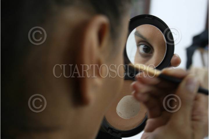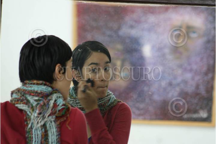 SAN LUIS POTOSI, SAN LUIS POTOSI, O3OCTUBRE2008.- Se realizo la tercera función del Festival Internacional de Danza Contemporánea, la cual lleva por nombre Velove Love del coreografo mexicano Marcos Arie Rosi. en la imagen los balilarines se preparan minutos antes de la funcion. FOTO:RICARDO CASTELAN/CUARTOSCURO.COM