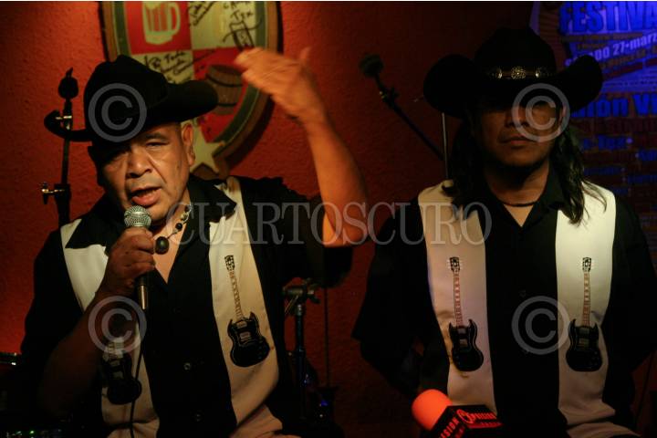 MÉXICO, D.F., 25MARZO2010.- Tex-Tex, grupo de Rocanrol mexicano, durante la conferencia de prensa para presentar lo que será la primera edición del Festival Cultural, Deportivo y Musical llamado; "FestivaLove 2010". El cual albergará a 25 grupos en vivo, exhibición de Lucha Libre, y un circuito Skate. Se realizará el sábado 27 de marzo en la explanada de la alberca Olímpica. FOTO: MISAEL VALTIERRA/CUARTOSCURO.COM