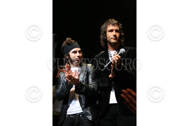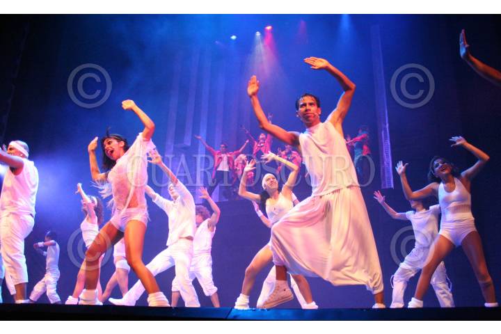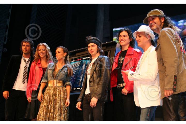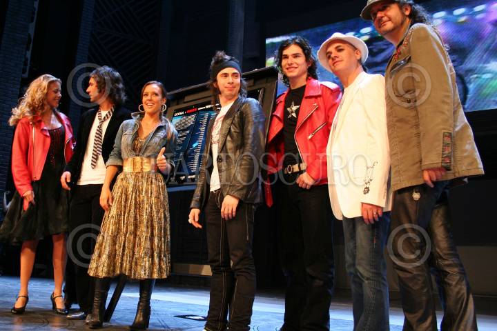 MÉXICO, D.F. 18AGOSTO2006.- El musical "Hoy no me puedo levantar" de Nacho Cano, cumplió las cien representaciones, por lo que el elenco lo celebró con una develación de placa, acompañados de la velocista Ana Gabriela Guevara, Fey y el grupo Fobia. FOTO: Isaac Esquivel/CUARTOSCURO.COM