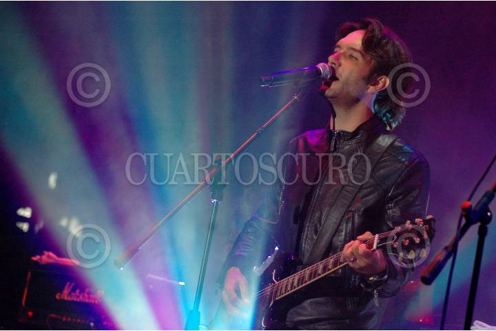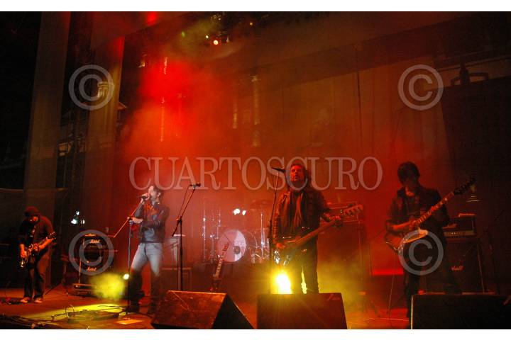 PUEBLA, PUEBLA, 14NOVIEMBRE2009.- El grupo de rock Los Concorde, liderado por Leonardo de Lozanne se presentaron en concierto en el zócalo de esta ciudad ayer por la noche como parte del 11 Festival Internacional de Puebla. FOTO: RODOLFO ANGULO/CUARTOSCURO.COM