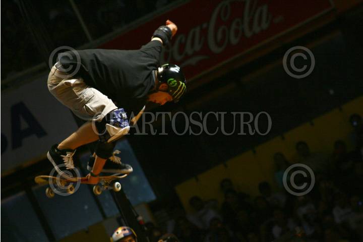 MÉXICO,D,F.,09SEPTIEMBRE2007.-El canadiense Pierre Luc Gagnon hace una sus saltos durante la final del skate vert de los X Games en el Palacio de los Deportes. FOTO:SASHENKA GUTIERREZ/CUARTOSCURO.COM