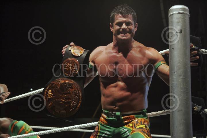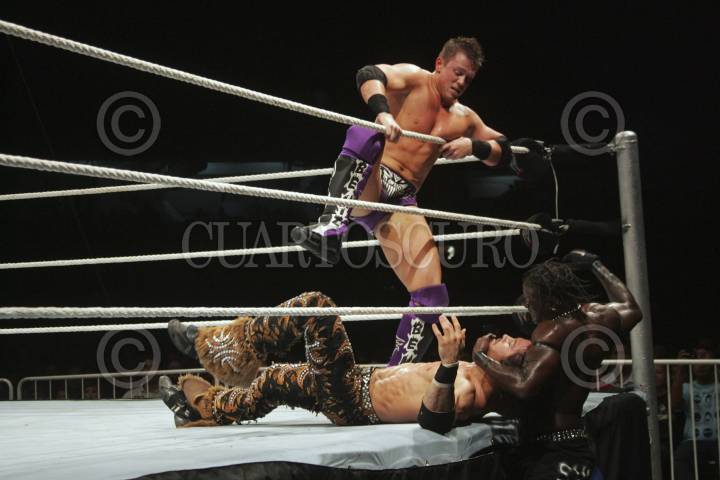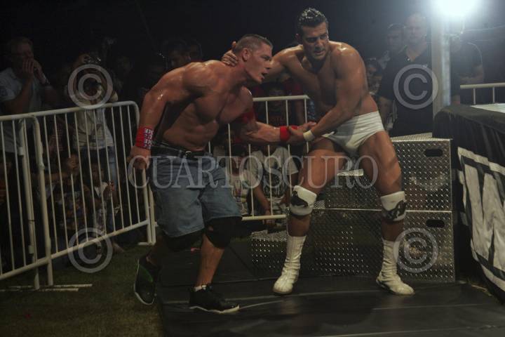 MÉRIDA, YUCATÁN, 14OCTUBRE2011.- Más de 11 mil aficionados se dieron cita la noche de ayer en el estadio Kukulcán para disfrutar las peleas de los mejores luchadores de la WWE. Entre las peleas estelares, se presentó el Campeonato de Divas, que Beth Phoenix retuvo el título al vencer a Kelly Kelly; y en la pelea principal, por el Campeonato de la WWE se enfrentaron el mexicano Alberto del Río y John Cena, quien resultó ganador al ser descalificado su contendiente. FOTO: FRANCISCO BALDERAS/CUARTOSCURO.COM