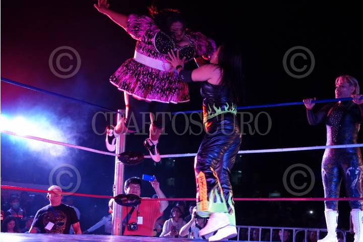La luchadora Lady Apache durante su llegada a la Lucha Libre en el Monumento a la Revolución
