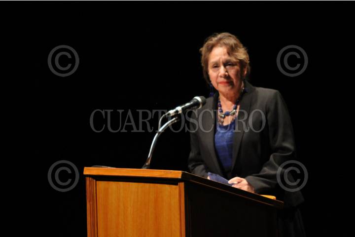 La antropológa Lucina Jiménez durante su participación en el homenaje póstumo a la primera actriz Marta Aura, en el Teatro del Bosque Julio Castillo