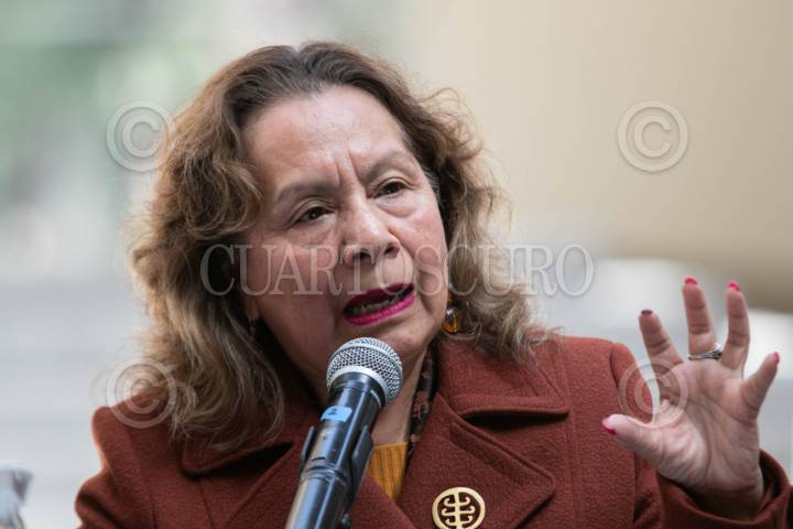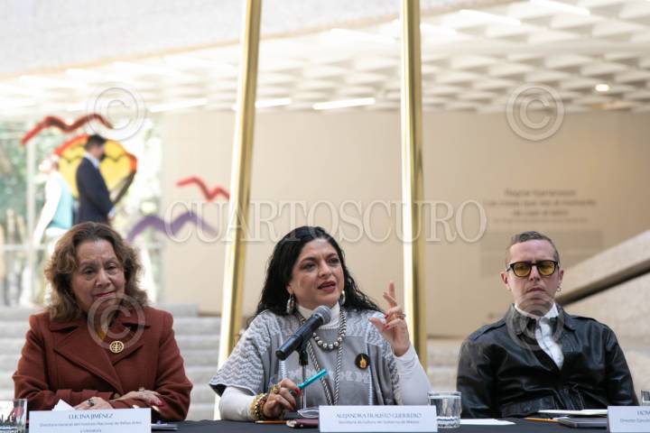 CIUDAD DE MÉXICO, 30ENERO2024.- Lucina Jiménez, directora general del Instituto Nacional de Bellas Artes y Literatura; y la titular de la Secretaría de Cultura participaron en la conferencia de prensa en la cual dieron detalles del calendario de actividades que realizarán este 2024, además de los avances de El Proyecto Bosque de Chapultepec Naturaleza y Cultura, esto en el Museo Rufino Tamayo. FOTO: MOISÉS PABLO/CUARTOSCURO.COM