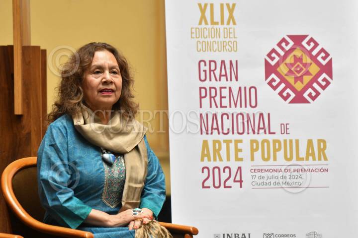 CIUDAD DE MÉXICO, 17JULIO2024.- Lucina Jiménez, directora del INBAL, durante la Cancelación del sello postal conmemorativo del 50 aniversario del Fonart, y la ceremonia de premiación por la XLIX Edición del Concurso Gran Premio Nacional de Arte Popular 2024. FOTO: MARIO JASSO/CUARTOSCURO.COM