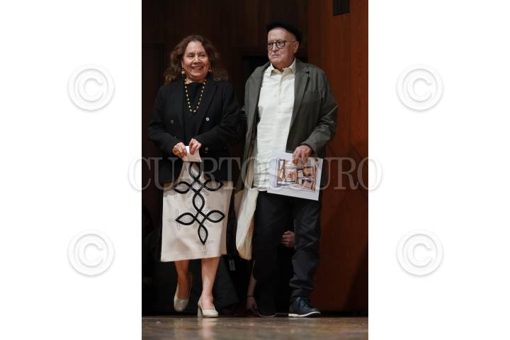 CIUDAD DE MÉXICO, 01AGOSTO2024.- Lucina Jiménez, directora general del Instituto Nacional de Bellas Artes (INBAL), y el artista plástico Gabriel Macotela arribaron al homenaje del pintor tapatío con motivo de sus 50 años de trayectoria artística en la Sala Manuel M. Ponce del Palacio de Bellas Artes. FOTO: GALO CAÑAS/CUARTOSCURO.COM