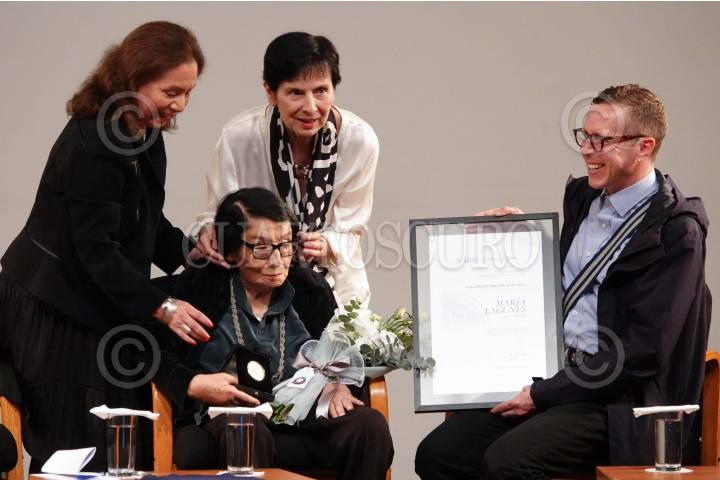 CIUDAD DE MÉXICO, 12AGOSTO2024.- Lucina Jiménez, directora General del INBAL, entregó la Medalla de Oro Bellas Artes en la disciplina de Artes Visuales a la artista plástica María Lagunes, acompañada de su hija María Segarra Lagunes en la en la Sala Manuel M. Ponce del Palacio de Bellas Artes. FOTO: GRACIELA LÓPEZ /CUARTOSCURO.COM