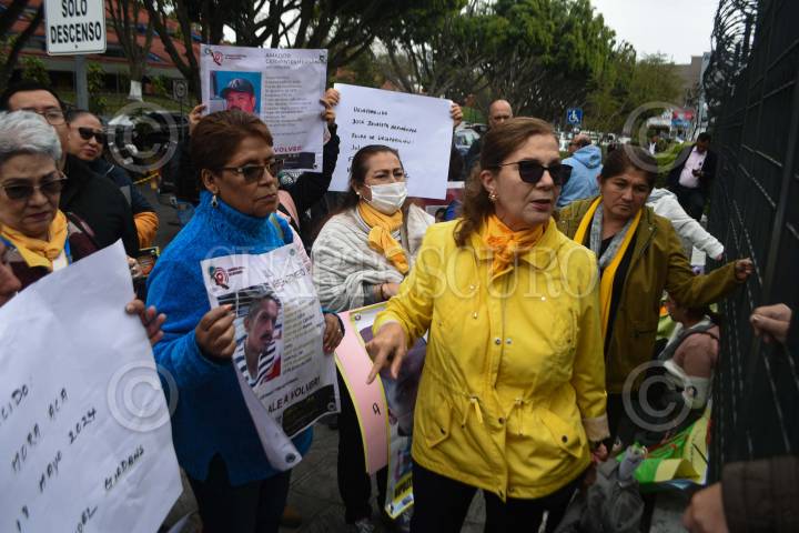 XALAPA, VERACRUZ, 21ENERO2025.- Las integrantes del Colectivo Solecito, encabezadas por Lucy Díaz, protestaron e intentaron ingresar a la comparecencia de la fiscal Verónica Hernández Giadáns, que se realizó en el Congreso de Veracruz. Reclamaron que en ninguna ocasión las ha recibido para escuchar los casos de sus hijos desaparecidos y así poder avanzar en la localización de sus seres queridos. FOTO: YERANIA ROLÓN/CUARTOSCURO.COM