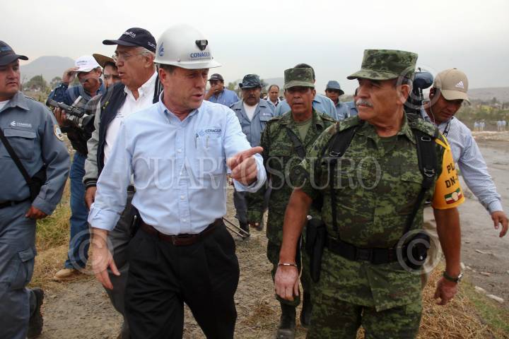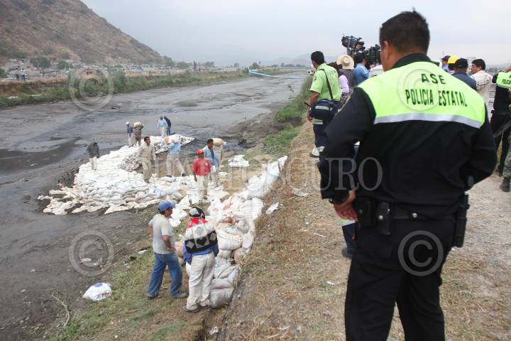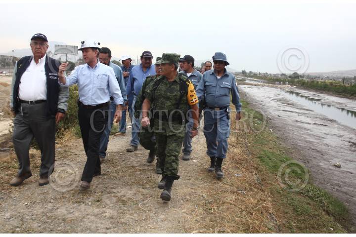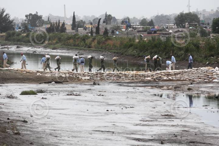 CHALCO, ESTADO DE MÉXICO, 18ABRIL2011.- El titular de CONAGUA, José Luis Lueje Tamargo, acompañado de autoridades de la 37 zona militar de Temamatla, realizaron un recorrido por la zona afectada del canal de aguas negras La Compañía, donde valuaron el tiempo y personal para reparar el muro afectado. FOTO: SAÚL LÓPEZ/CUARTOSCURO.COM FOTO: SAÚL LÓPEZ/CUARTOSCURO.COM