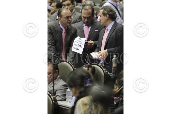 MÉXICO, D.F., 17OCTUBRE2013.- Luis Alberto Villareal y Juan Bueno Torio, diputados del PAN, durante la sesión en la cámara de diputados donde se voto en lo general la Reforma Hacendaria. FOTO: GUILLERMO PEREA /CUARTOSCURO.COM