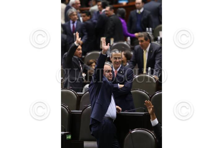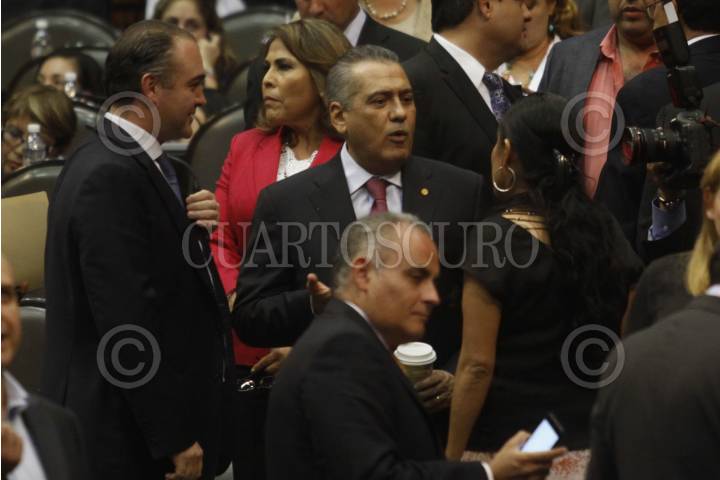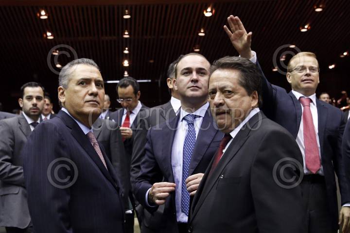 MÉXICO, D.F., 08JULIO2014.- Los diputados Luis Alberto Villareal, Manuel Añorve, Manlio Fabio Beltrones y Héctor Gutiérrez de la Garza, durante la sesión en la Cámara de Diputados donde se aprobó las leyes secundarias de la Reforma Energética. FOTO: CUARTOSCURO.COM