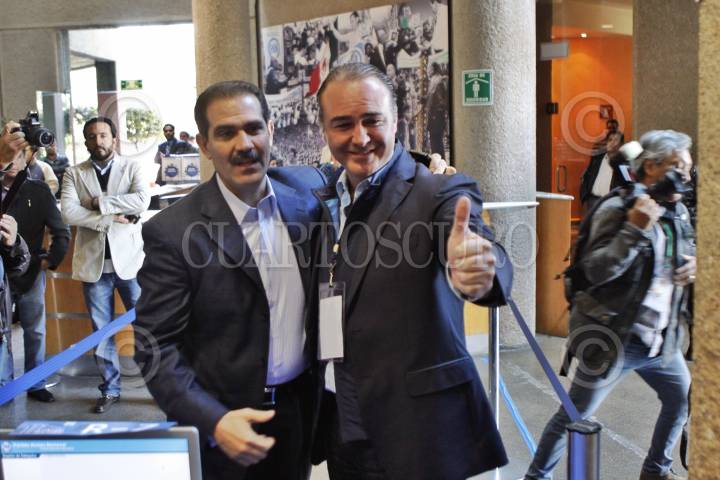 MÉXICO, D.F., 18ENERO2014.- Guillermo Padres Elías, gobernador de Sonora y Luis Alberto Villareal, coordinador de los diputados federales pianistas, durante el Consejo Nacional del Comité Ejecutivo Nacional del PAN. FOTO: MOISÉS PABLO /CUARTOSCURO.COM