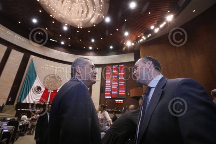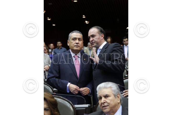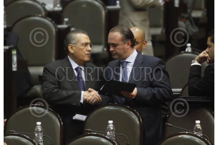MÉXICO, D.F., 30ABRIL2014.- Los coordinadores legisaltivos Manlio Fabio Beltrones, PRI y Luis Alberto Villareal, PAN, durante la sesión en la Cámara Diputados. FOTO: CUARTOSCURO.COM