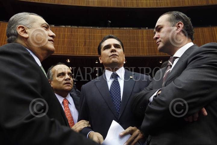 MÉXICO, D.F., 05FEBRERO2014.- Los diputados Manlio Fabio Beltrones, Manuel Añorve, Silvano Aureoles Conejo y Luis Alberto Villareal, durante la sesión en la Cámara Baja. FOTO: CUARTOSCURO.COM