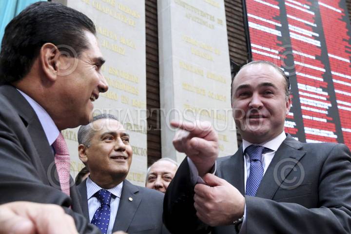 PUEBLA, PUEBLA, 15ENERO2014.- Gustavo Madero, dirigente nacional del PAN, Luis Alberto Villareal, líder de Acción Nacional en la Cámara de Diputados, a su llegada al tercer informe de gobierno del gobernador Rafael Moreno Valle en el auditorio de la Reforma. FOTO: HILDA RÍOS/ CUARTOSCURO.COM
