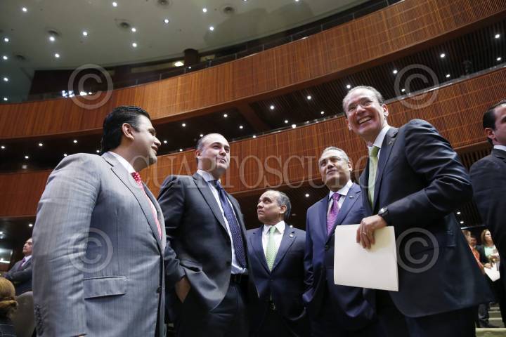 MÉXICO, D.F., 18OCTUBRE2013.- Durante la sesión los diputados Manlio Fabio Beltrones, coordinador del PRI, Luis Alberto Villareal, coordinador del PAN, José Isabel Trejo, diputado del PAN y Arturo Escobar y Vega, coordinador del PVEM, durante la sesión en la Cámara Alta. FOTO: CUARTOSCURO.COM