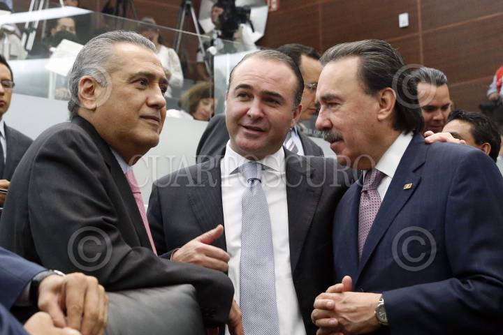 MÉXICO, D.F., 23JULIO2014.- Los legisladores Manlio Fabio Beltrones, Luis Alberto Villareal y Emilio Gamboa, durante la sesión de la Comisión Permanente. FOTO: CUARTOSCURO.COM