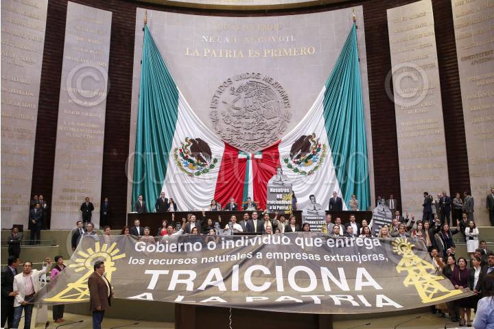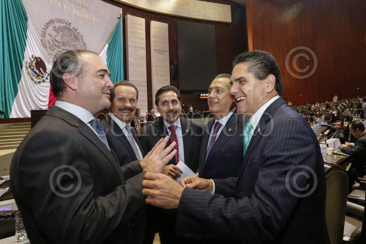 MÉXICO, D.F., 30JULIO2014.- El diputado Luis Alberto Villarreal, coordinador del PAN, y los diputados Juan Bueno Torio y Rubén Camarillo, acompañados de los coordinadores Manlio Fabio Beltrones, del PRI, Silvano Aureoles, del PRD, y durante la sesión extraordinaria en la Cámara de Diputados, en donde acontece el tercer dictamen de las leyes secundarias en materia energética. FOTO: /CUARTOSCURO.COM