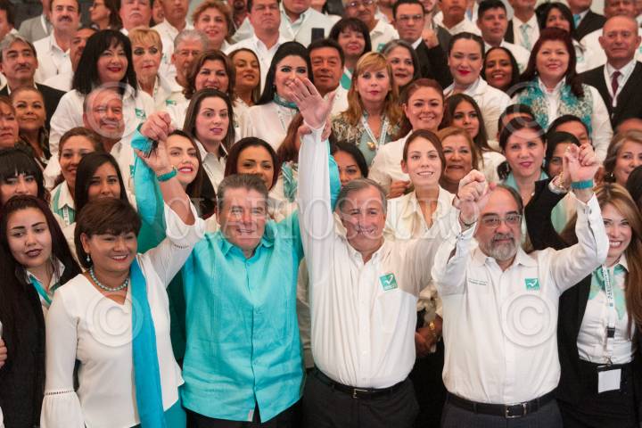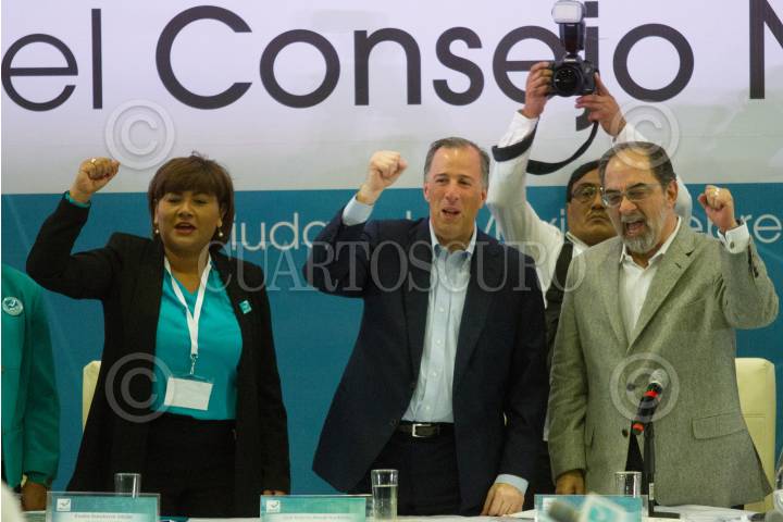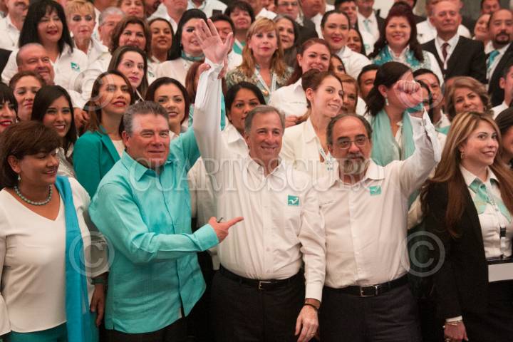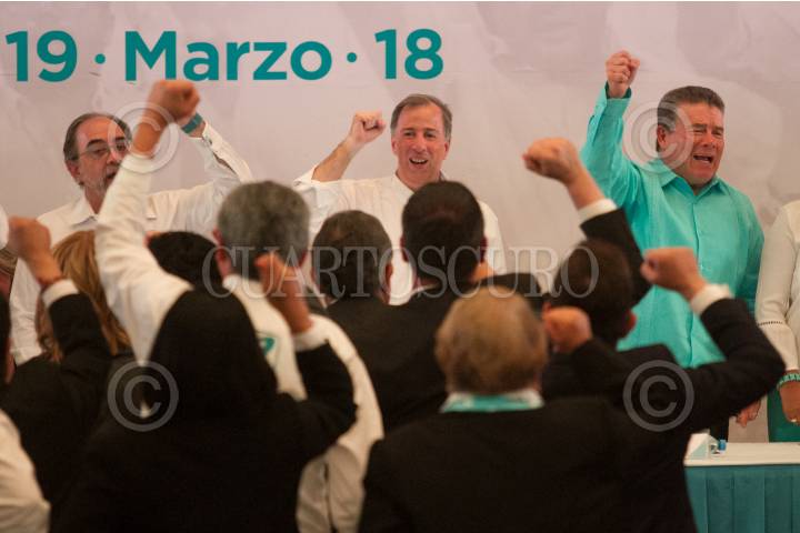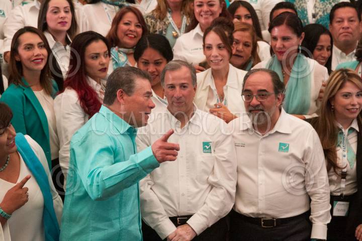 CIUDAD DE MÉXICO, 19MARZO2018.- Silvia Luna Rodríguez, secretaria general adjunta del Partido Nueva Alianza; Luis Castro Obregón, presidente del PANAL; José Antonio Meade Kuribreña, candidato a la Presidencia de México por la coalición "Todos por México", y Juan Díaz de la Torre, consejero nacional, se reunieron con los candidatos del PANAL a diversos cargos políticos, en el Ex Convento de San Hipólito. FOTO: MOISÉS PABLO /CUARTOSCURO.COM