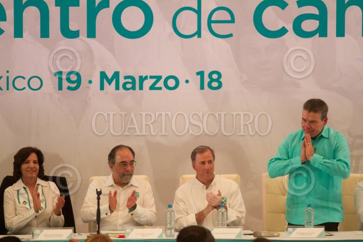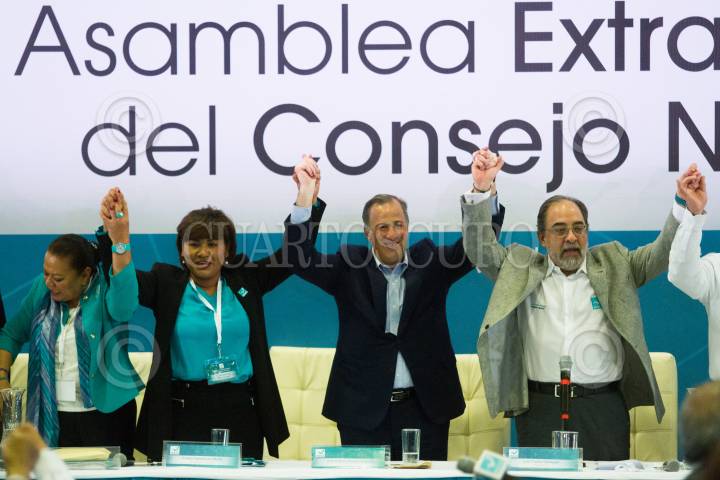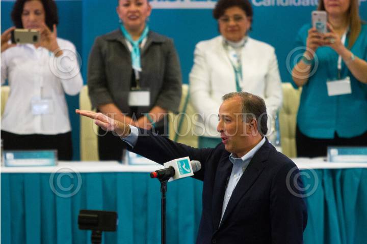 CIUDAD DE MÉXICO, 19FEBRERO2018.- José Antonio Meade Kuribreña tomó protesta como candidato a la Presidencia de la República por el Partido Nueva Alianza, durante su asamblea extraordinaria del consejo nacional encabezada por su presidente Luis Castro Obregón. FOTO: MOISÉS PABLO /CUARTOSCURO.COM